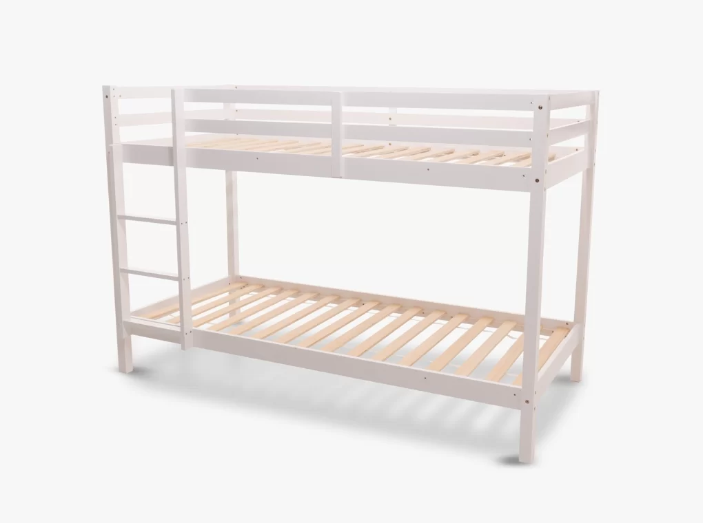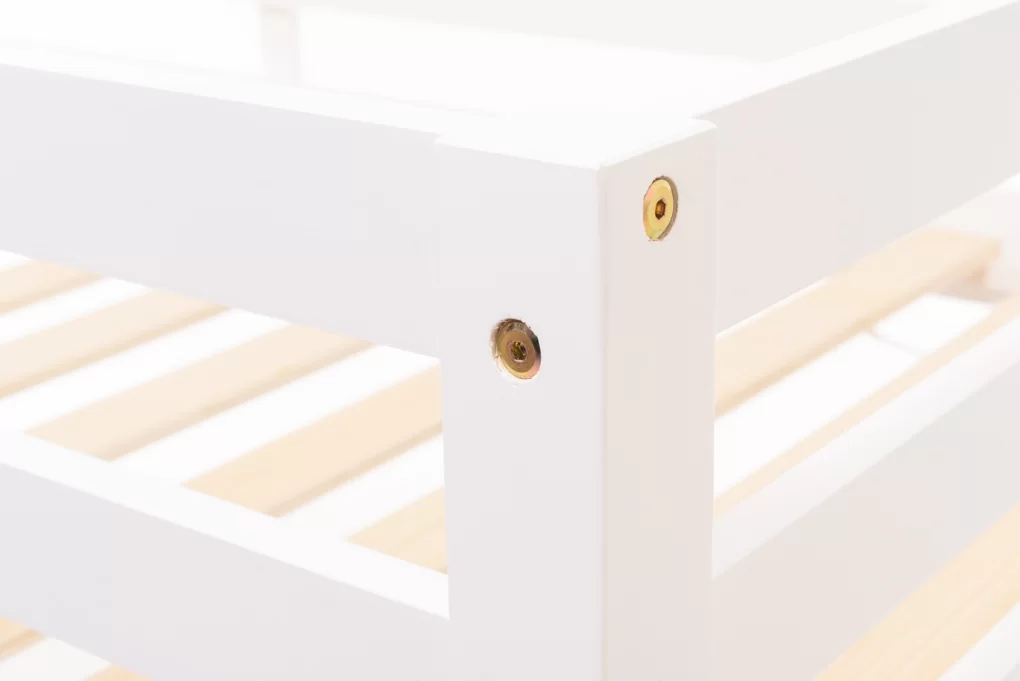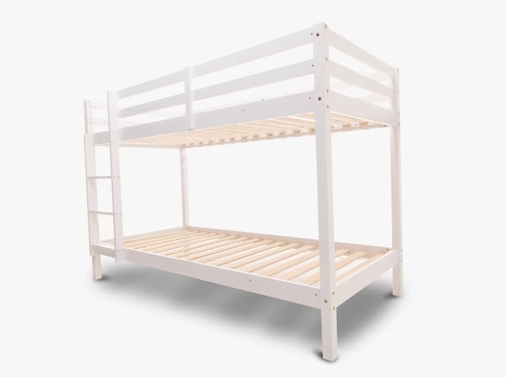 Tömör fenyő emeletes ágy, fehér festéssel.