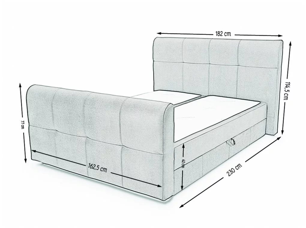 - hosszúság 230 cm (fejvéggel és lábvéggel együtt)