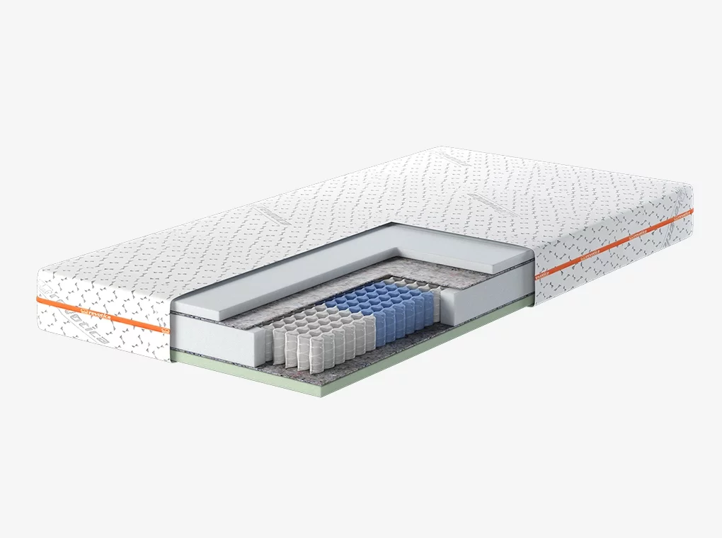 - 9 cm magas, 1,8 mm átmérőjű rugóacélból készült, különleges minipocket matracmag.