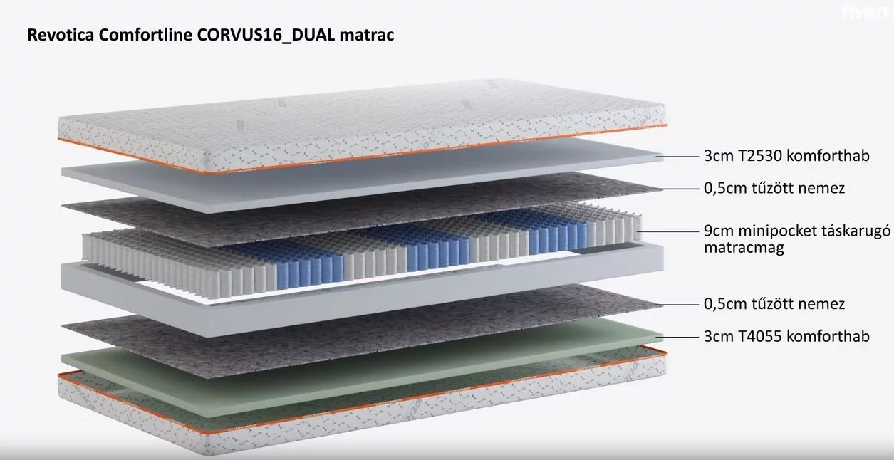 16 cm vastag - különleges minipocket táskarugós szerkezetű matracmaggal, két oldala kétféle keménységgel.