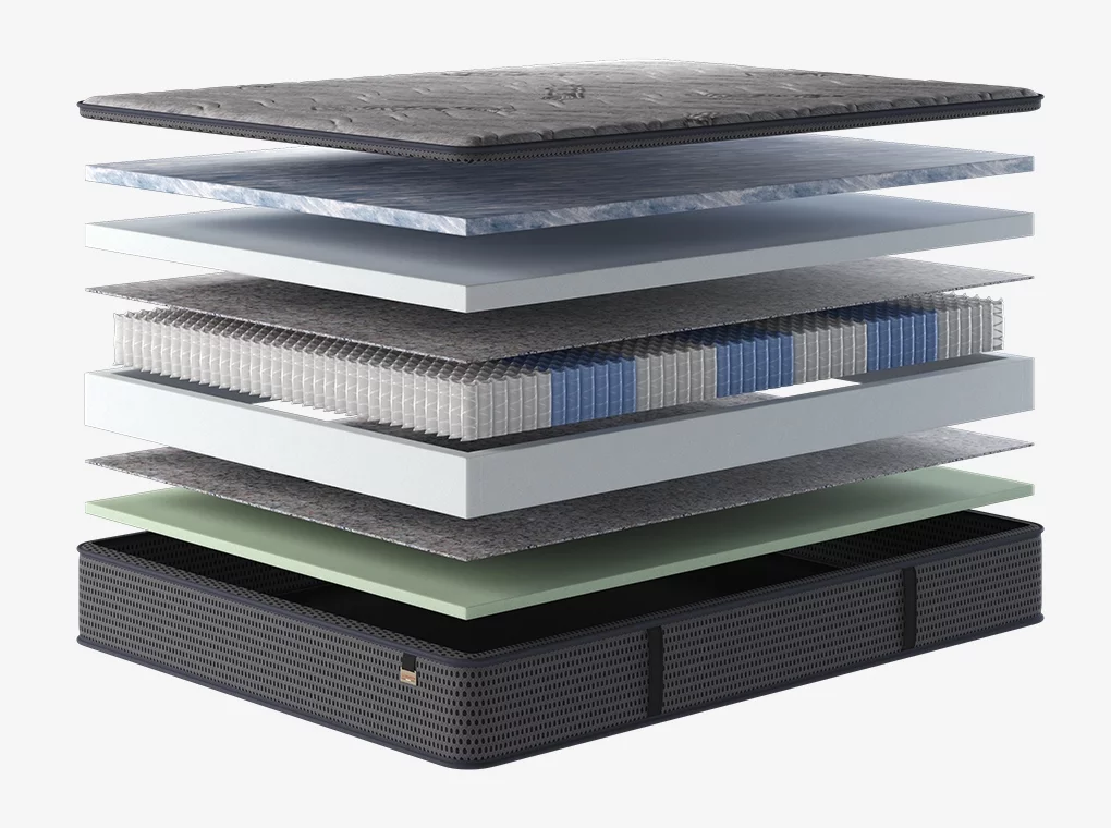 ✔A matrac felső huzata double jacquard technológával számítógépvezérelt körkötőgépen készülő GRAPHENE huzat, melybe 400 gr/nm vastagságú töltővlies-t steppelünk.