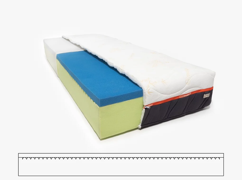 - 4 cm V5015 hab 50 kg/m3 habsűrűségű, 1,5 kg/m kpa nyomószilárdságú memóriahab komfortréteg.