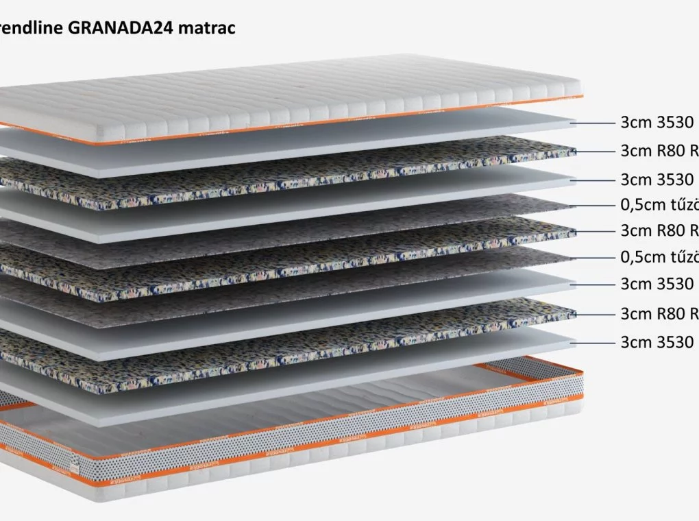 24 cm magas matrac: szendvicsszerkezetű hideghab + rebound