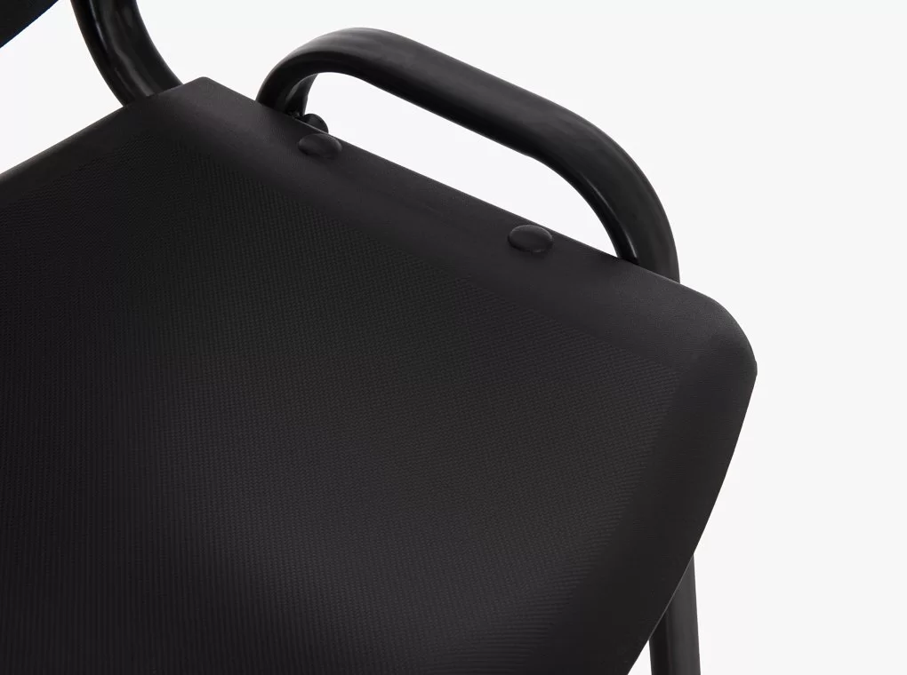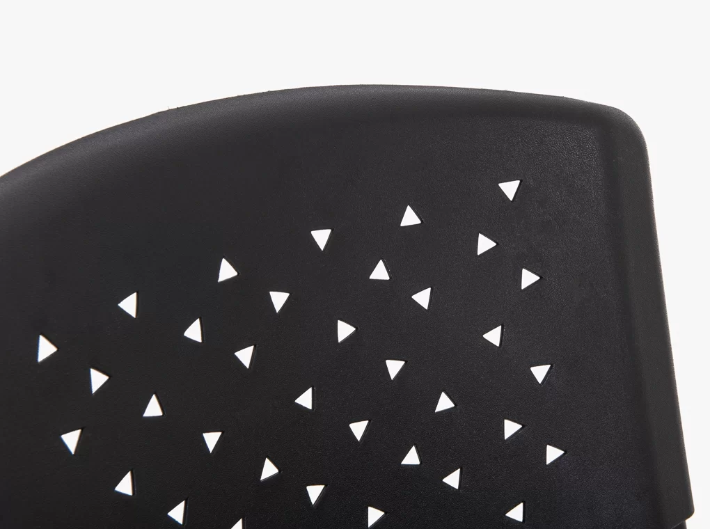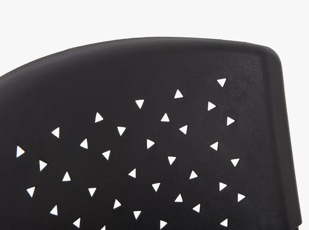 Fekete tárgyalószék műanyag ülő- és hátlap, fém váz és lábakkal.